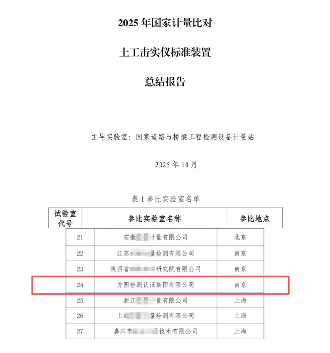 方圆检测认证集团圆满完成2025年度国家计量比对项目——彰显行业领先技术实力与专业影响力