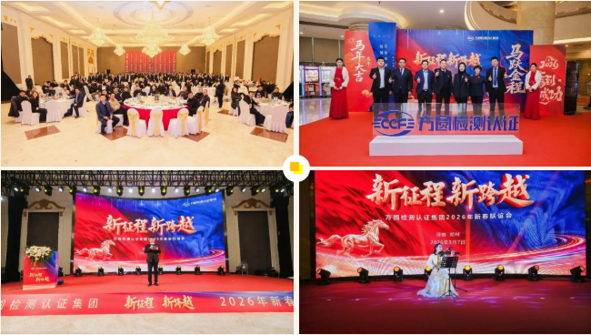 辞旧迎新启新序,凝心聚力向未来。2026年3月7日,方圆检测认证集团2026年度新春联谊会隆重举行。本次盛会以“新征程·新跨越”为主题,全面回顾集团“二五”规划收官之年的奋斗历程与丰硕成果,隆重发布第三个五年规划战略,表彰先进典型、凝聚奋进力量,擘画高质量发展新蓝图。集团领导、各界嘉宾、合作伙伴与全体员工欢聚一堂,共庆成就、共话未来。