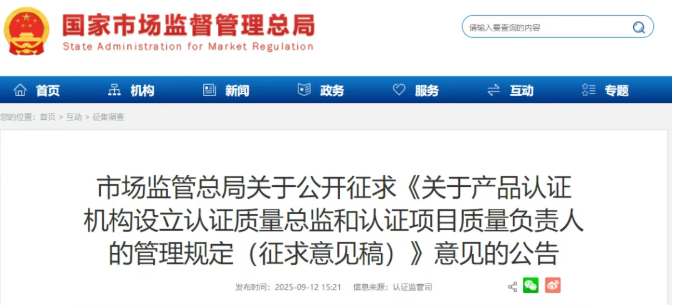 9月12日,市场监管总局发布《关于产品认证机构设立认证质量总监和认证项目质量负责人的管理规定(征求意见稿)》,针对当前产品认证机构质量安全责任机制不够健全、质量安全责任压...