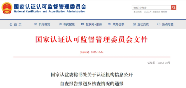 10月24日,国家认监委秘书处对认证机构信息公开自查报告报送及核查情况进行了通报,统计时点下共计1220家认证机构,其中1058家认证机构通过“认证机构信息公开自查整改情况...