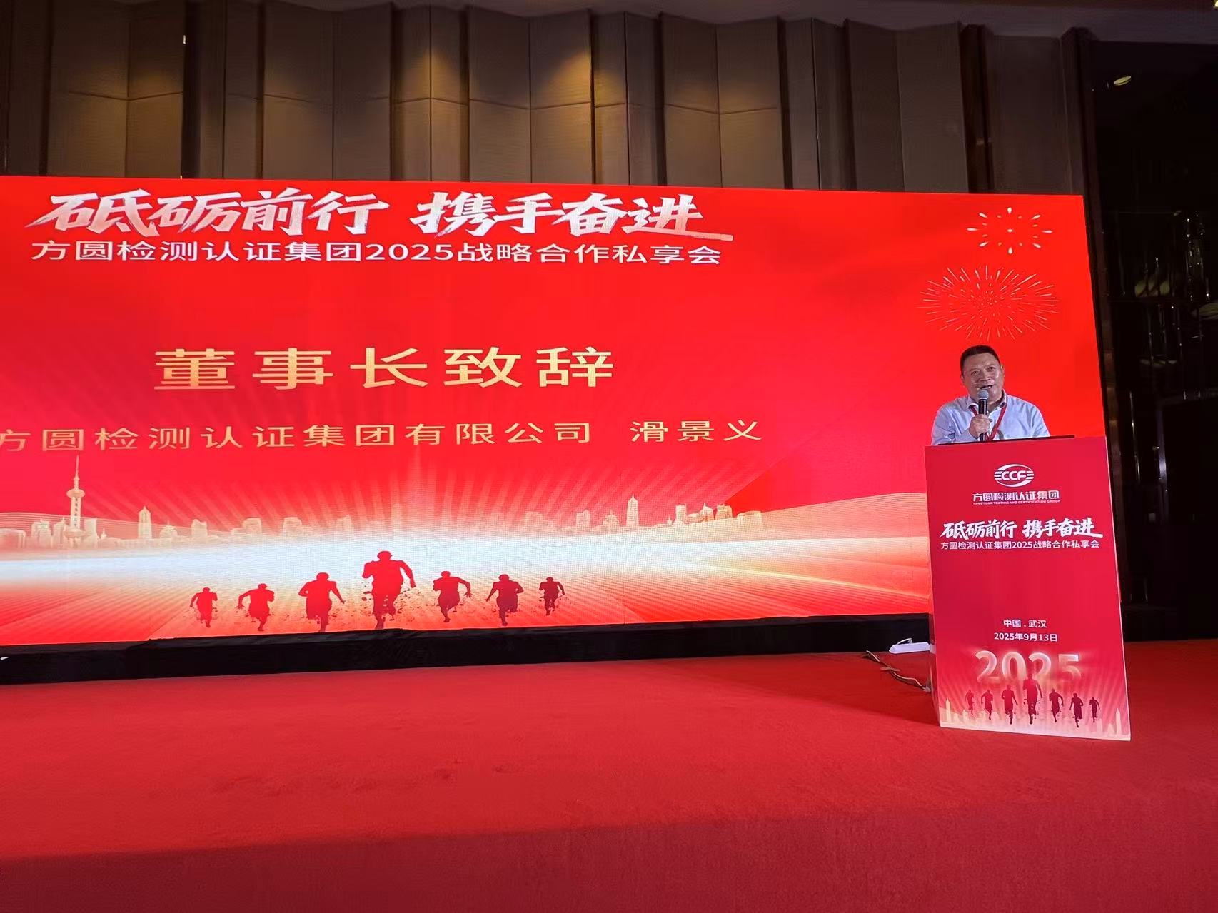 2025年9月13日,秋高气爽,桂花飘香。值此方圆检测认证集团成立二十三周年之际,集团公司在美丽的江城武汉隆重举办了“砥砺前行,携手奋进”二十三周年私享会。集团总部高层管理人员、资深行业专家、来自全国各地的合伙人齐聚一堂,庆祝集团公司成立二十三周年荣耀时刻,共话行业未来发展趋势,共绘合作共赢新蓝图。