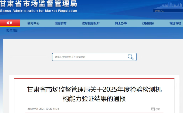 甘肃省市场监督管理局关于2025年度检验检测机构能力验证结果的通报