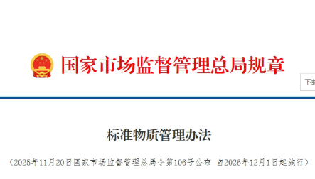 近日,市场监管总局出台《标准物质管理办法》(以下简称《办法》),将于2026年12月1日起正式施行。标准物质是化学、生物等检测活动中作为量值依据的“标尺”和“砝码”,是关键的计量公共产品和基础性战略科技资源。《办法》对国家基准物质的申报条件和一级、二级标准物质的许可条件进行了细化,同时明确标准物质定级证书的有效期为五年。