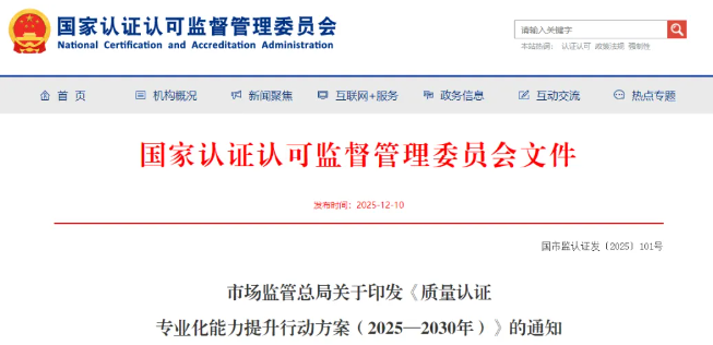 质量认证专业化能力提升行动方案(2025—2030年)》全文