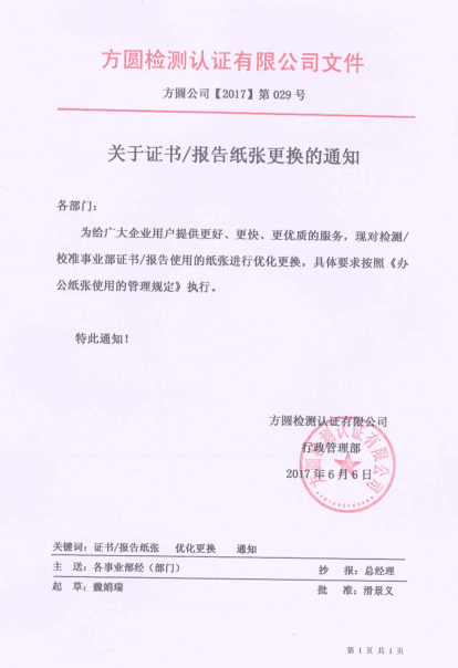 上一篇:关于方圆公司产品检测/计量校准送样地址变更的通知